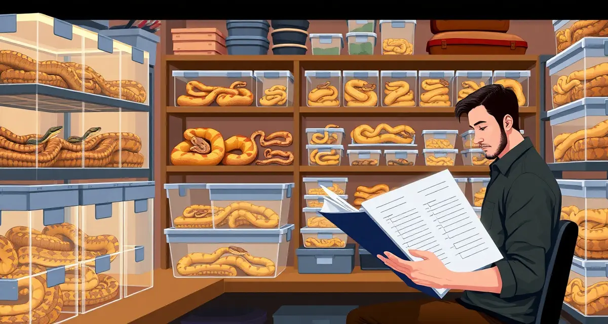 - Ball python breeding operations require systematic record-keeping from pre-season preparation through end-of-season sales.