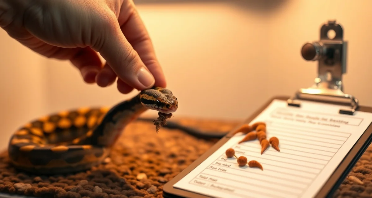 Tracking prey size alongside weight confirms that you're feeding appropriately sized prey and that the animal is growing on schedule. A hatchling still on pinkies at 150g is being underfed. A hatchling on hoppers at 70g may have a prey-size mismatch.